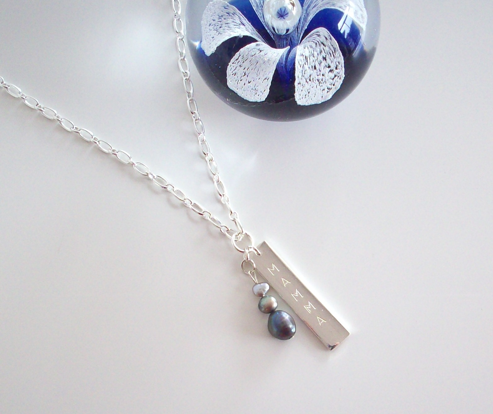 Sötvattenspärlor i grå toner