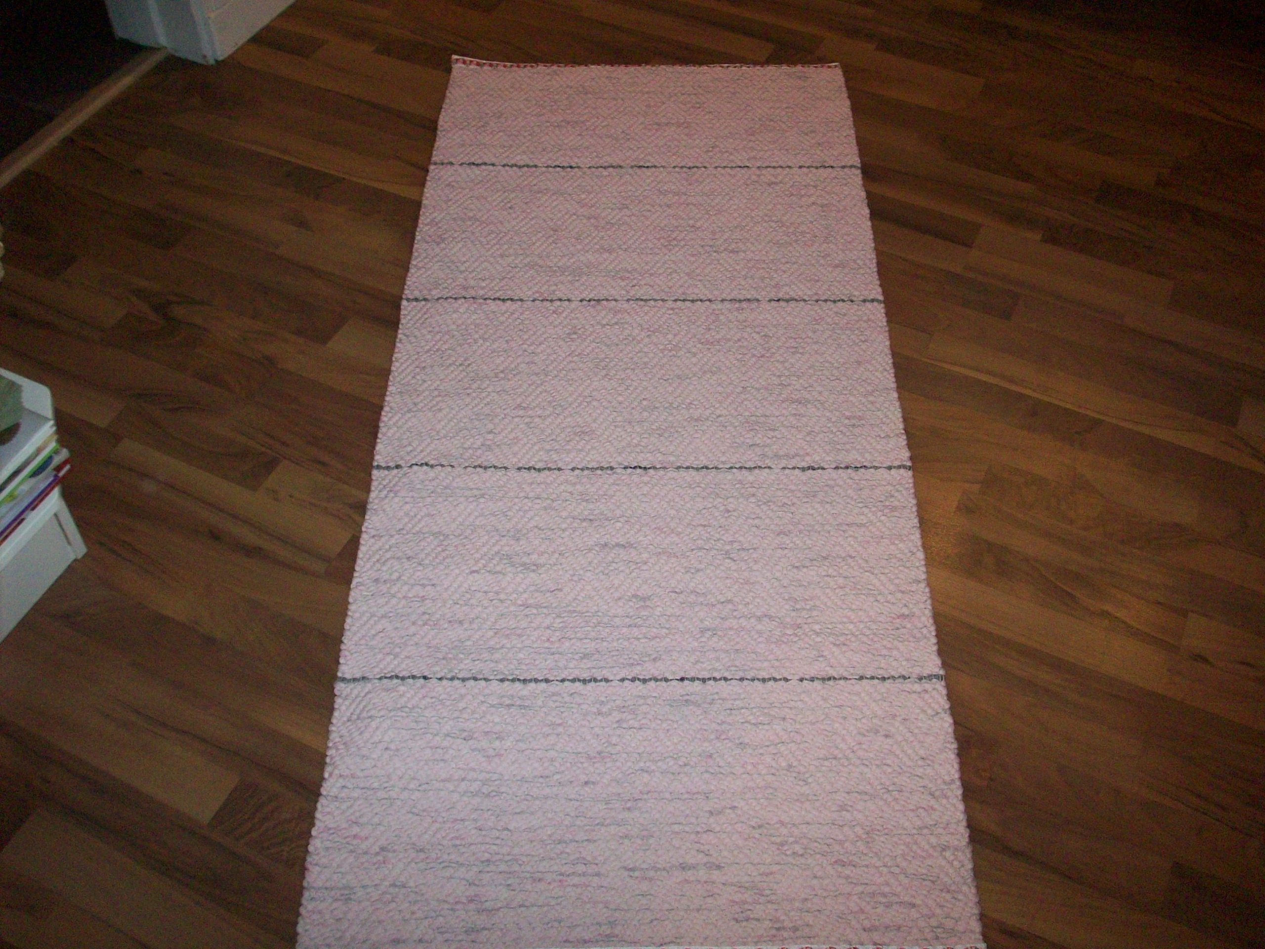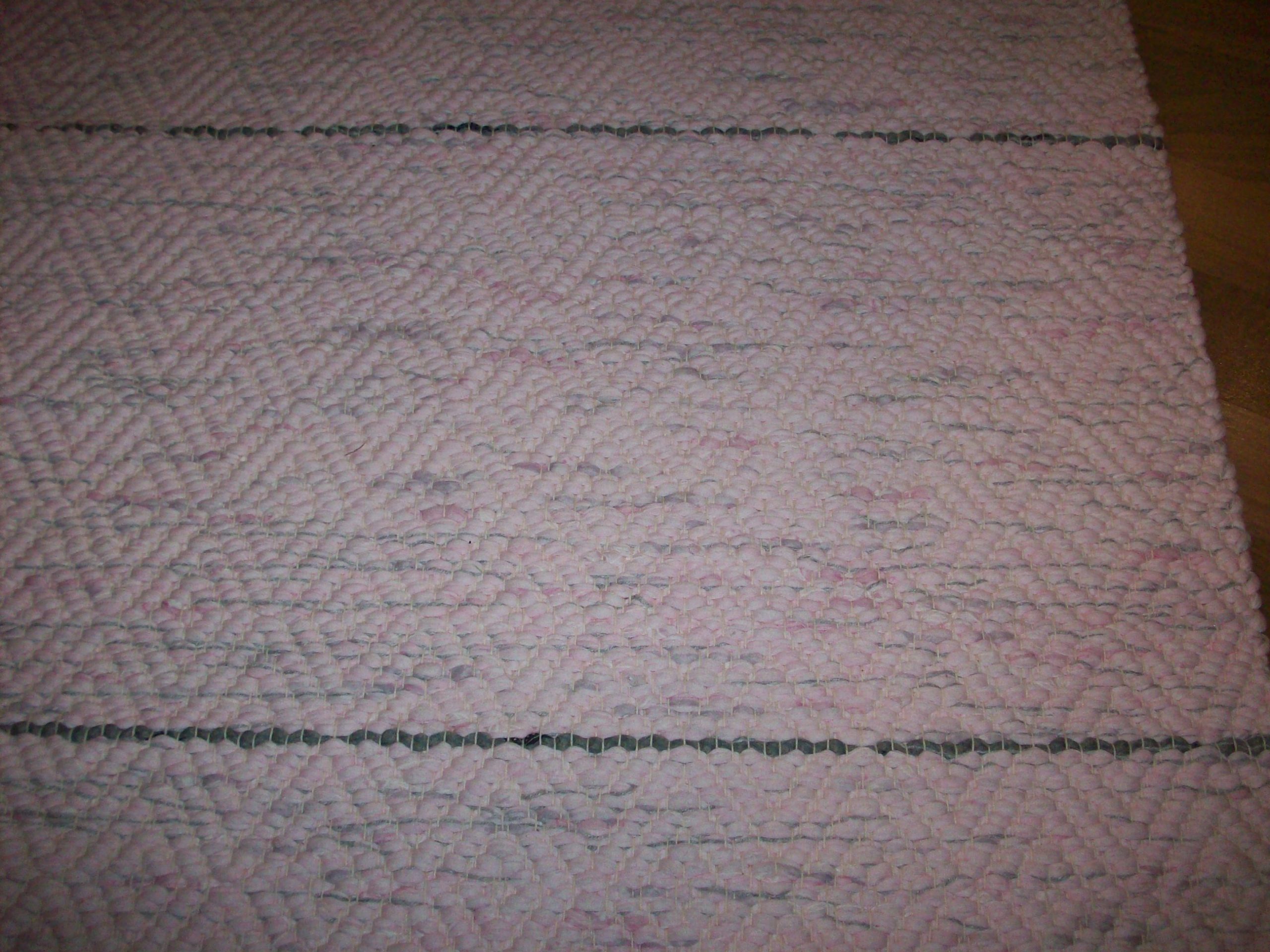 Handvävd trasmatta vävd i gåsöga. Färgen är mild rosa med ljusgrå skiftningar.